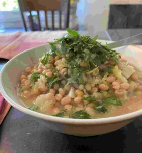 I used store-bought Arrabbiata sauce for Shrimp Fra Diavolo (p. 131-2) with much success. The secret to this one is the fresh-minced parsley and thinly sliced lemon peel. Nayfeld employs sliced lemon peel with equal success in Lemony Butter Beans (p. 202-3). When paired with cooking’s “holy trinity” (garlic, onion and celery), the resultant dish is deeply flavored and delicious. I ended up whipping the leftovers into puree to use as a dip for vegetables. There was nothing wrong with Crispy Roasted Sweet-and-Sour Mushrooms (p. 211-12) – roasted maitakes are a toasty, crispy delight. Mixed as intended with caramelized, vinegared onions, the dish tasted fine, but not as fun or unique as Nayfeld’s other creations.