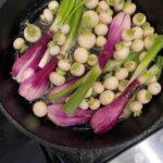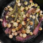 To get a sense of Clark’s way with vegetables, I cooked Bacon-fat Roasted Turnips (p. 234), with Tokyo turnips from Front Porch Farm and Hobb’s Applewood-Smoked Bacon. Simple and delicious. Do you know Grace Young’s cookbook, The Breath of a Wok? I have made Young’s dry-fried string beans countless times for my family. Clark’s Dry-fried Green Beans (p. 352) were good and different with shishitos, mushrooms and chile, but my entire family said “go back to the original.” There’s no messing with Young’s success around my table! Clark references local Szechuan restaurants in his technique so maybe he is a Young fan, too?