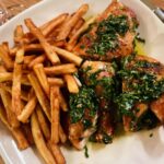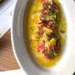 Do you ever walk into a restaurant and a memory of a previous visit there snaps into focus? When I stepped into the blue-washed 2025 iteration of Park Tavern, I did not recognize it, at first. The dark walnut paneling of yore is gone (I remember them from a networking event I attend), replaced with shimmery pale blue tiles. I would swear the windows are bigger, too, letting in cascades of sun-setting light. The vibe now is more California (or Greek taverna?) than New York. Once the sun set behind the trees along Washington Square Park, I felt more at ease, the tables full, the bustle palpable, the mood in the room about business casual dinners and couples on second dates.